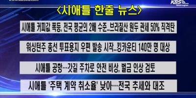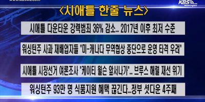 속보 No items. KBS-WATV 라이브 스트리밍 워싱턴주 / 오리건주 로컬뉴스 한인 노인 대상 투자사기 ‘제니 리’, 피해자 31명으로 늘어 October 28, 2025 한인 노인들을 대상으로 한 대규모 투자 사기 사건의 피해자가 31명으로 늘어난… 서부 워싱턴 강풍으로 9만6000명 정전… 피어스 카운티 특히 심각 October 28, 2025 토요일 서부 워싱턴을 강타한 강풍으로 인해 9만6000명 이상이 정전을 겪고 있으며,… 아시아나항공 ‘가을 트래블 마트’ 개최… 시애틀-인천 항공료 최대 할인 October 28, 2025 아시아나항공 미주지역본부가 한국관광공사(KTO)와 공동으로 ‘트래블 마트… 시애틀 시장선거 여론조사 “케이티 윌슨 앞서나가”… 브루스 해럴 재선 위기 October 28, 2025 이번 주 발표된 두 차례 여론조사에서 케이티 윌슨 후보가 현직 브루스 해럴… 워싱턴주 사과 재배업자들 “미-캐나다 무역협상 중단으로 운영 타격 우려” 커져 October 28, 2025 워싱턴주 사과 재배업자들이 미국과 캐나다 간 무역협상 교착상태로 인한 운영상… 시애틀 선거전 가열…진보 성향 후보들 기성 정치인에 도전장 October 28, 2025 시애틀 11월 4일 선거 완전 가이드…주요 공직과 세금 법안 결정 시애틀 유권자들이… 워싱턴대학(UW) 한반도 포럼, 경제안보 통합시대 대응전략은? October 28, 2025 주 시애틀 총영사관이 워싱턴대학교 한국학센터, 서울대 통일평화연구소와… 워싱턴주 한인상공회의소 제36대 회장 선출…12월 총회서 결정 October 28, 2025 워싱턴주 한인상공회의소가 은지연 회장과 대니엘 윤 이사장에 이어 2026년부터… 워싱턴주 93만 명 식품지원 혜택 끊긴다…정부 셧다운 4주째 October 28, 2025 연방정부 셧다운이 4주째 이어지면서 워싱턴주의 수십만 저소득층 주민들이… 워싱턴대(UW) 한국학연구소, 서은지 총영사 초청 특강 개최한다 October 28, 2025 워싱턴대학교 한국학연구소와 아시아언어문학과가 11월 19일 서은지 주시애틀… 동영상 뉴스 KBS-WATV 시애틀지역(서북미) 한줄뉴스/서북미주간날씨/뉴스게시판(20251027) 워싱턴 챔버 앙상블, 감동의 가을의 깊은 감동이 음악으로… 한인입양가족재단(KORAFF), 할로윈 축제 개최 입양 한인 가족들이 한자리에… 조선시대 서민 그림 ‘민화’, 타코마 한국 전통 민화의 아름다움을… “OBBBA 법안 활용법 알려드립니다”, 한인 미국의 새로운 세법 ‘One… KBS-WATV 시애틀지역(서북미) 한줄뉴스/서북미주간날씨/뉴스게시판(20251020) “예술과 과학은 대립 아닌 동반자”, 워싱턴주 피어스대학에서… 5MinBiz 5MinBiz (Episode 25) “건설업 입찰정보” 5MinBiz (Episode 24) 중소상공인의 디지털 5MinBiz (Episode 22) 안전 예방 5MinBiz (Episode 21) 산재보험과 사업장 5MinBiz (Episode 20) 고용법과 직원 5MinBiz (Episode 19) 비즈니스 규정의 5MinBiz (Episode 18) 비즈니스 리소스를 Business Focus
