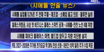 속보 No items. KBS-WATV 라이브 스트리밍 워싱턴주 / 오리건주 로컬뉴스 “화장실 뷰가 명물”이었던 ‘컬럼비아 타워 클럽’, 4월말 문닫는다 April 07, 2026 시애틀 다운타운 랜드마크인 컬럼비아 센터(Columbia Center) 75·76층에 자리한 프라이빗… 시애틀발 인천행 델타항공, 엔진 이상으로 ‘긴급 회항’… 인명 피해는 없어 April 07, 2026 시애틀 시택공항(Sea-Tac)을 떠나 인천으로 향하던 델타항공 여객기가 비행 중… “내 손안의 척척박사, AI와 친구 되기”…워싱턴-타코마 한인회, 시니어 AI 교육 April 07, 2026 타코마 지역 한인 어르신들이 인공지능(AI)을 직접 체험하고 일상에서 활용하는… 워싱턴주 체육회·대한사격연맹, 5월 2일 한인 대상 총기 안전 세미나 개최 April 07, 2026 워싱턴주 체육회(회장 권희룡)와 워싱턴주 대한사격연맹(회장 정정이)이 지역… [부고] 지역 한인사회 발전에 헌신한 김기현 전 시애틀 한인회장 별세 April 07, 2026 시애틀 한인 사회의 원로 지도자이자 제39대 시애틀 한인회장을 역임한 김기현(金基顯)… “처음을 잊지 않으며, 함께 미래로”…대한부인회, 초대 회장 홍커밍 후원 모임 연다 April 07, 2026 1972년 자신의 집에서 열 명의 한인 여성들과 소박한 친목 모임을 시작해 오늘날… 시애틀 테크 기업 감원 행진 멈추지 않는다…올해 1분기만 5만2000명 해고 April 07, 2026 인공지능(AI) 개발 경쟁이 가속화되는 가운데 시애틀 테크 업계의 감원이 올해도… 대전시 기증 정자마저 점령당했다…한인 커뮤니티, ‘대전정’ 방치 언제까지 April 07, 2026 시애틀 비콘 힐(Beacon Hill) 북단에 자리한 공원 4곳이 마약 중독자와 판매상들에게… 22만 명 도시 타코마, 한인 김현 씨에게 행정 최고직 맡긴다 April 07, 2026 워싱턴주 세 번째로 큰 도시 타코마시가 한인 김현(Hyun Kim) 씨를 시티매니저로… 2026 미주한인회장대회 성료…타코마한인회 모범한인회상 수상 영예 April 07, 2026 미주한인회총연합회(미주총연, 총회장 서정일·이사장 송폴)가 주최한 ‘2026… 동영상 뉴스 KBS-WATV 시애틀지역(서북미) 한줄뉴스/서북미주간날씨/뉴스게시판(20260406) 월 $1,955로 집주인 가능?! 린우드 페더럴웨이시·한인회 협력 강화, “한우리정원, 우리가 [시애틀,벨뷰부동산] 김현숙의 시애틀부동산인사이드#32 은퇴 후 KBS-WATV 시애틀지역(서북미) 한줄뉴스/서북미주간날씨/뉴스게시판(20260330) “K 컬처와 K 방산 한자리에”…민주평통 페더럴웨이 한인 시정보고회…범죄 26% 감소·월드컵 5MinBiz 네트워킹의 힘 Power of Networking 상공인들을 위한 부Wealth의 구조 만들기/Hour 총기 소유자의 법적인 책임은 무엇인가?/5MinBiz 5MinBiz (Episode 39) 총기 소유와 5MinBiz (Episode 38) 스마트폰으로 하는 5MinBiz (Episode 37) 스마트폰으로 하는 5MinBiz (Episode 35) 세금보고를 위한 Business Focus