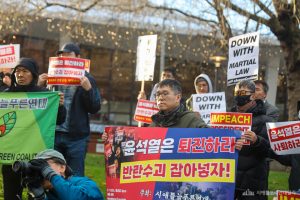 시애틀 한인사회가 윤석열 대통령의 계엄령 선포를 규탄하는 목소리를 높였다. 시애틀늘푸른연대는 지난 7일 오후 시애틀센터 앞에서 윤석열 대통령 퇴진을 촉구하는 첫 집회를 개최했다. 이날 집회에는 지역 한인과 유학생, 미국 진보단체 회원 등 50여 명이 참석했다.