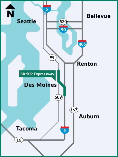 I-5와 24번가 남쪽 구간 사이의 첫 번째 1마일 구간은 지난 6월 말에 개통됐다. 현재 공항 인근 남쪽 188번가에서 끝나는 SR 509와 연결하기 위해 고속도로를 추가로 2마일 연장하는 공사가 진행 중이며, 이 구간은 2028년에 개통될 예정이다.