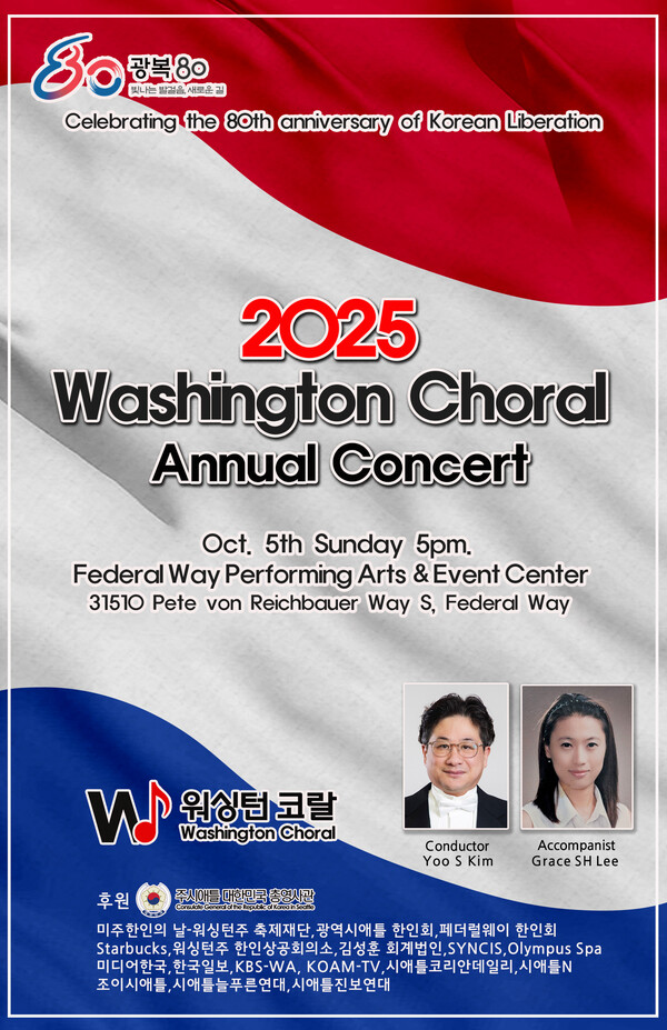 워싱턴 코랄 합창단은 “광복 80주년을 맞아 독립의 의미를 되새기고, 한국 가곡을 통해 조국 사랑을 표현하는 뜻깊은 자리가 될 것”이라며 “지역 동포 여러분의 많은 참석을 바란다”고 전했다.