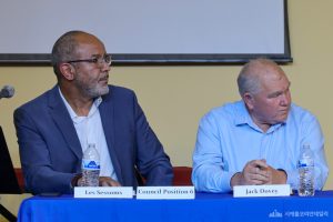 시의회 6번 의석의 레스 세섬스는 오랜 주민이자 남편, 아버지, 지역사회 구성원으로서 “베이스 연주자 지망생”이기도 하다고 소개하며 청중의 웃음을 자아냈다. 그는 “페더럴웨이의 가장 큰 강점은 풍부한 문화적 다양성”이라며 “예술·문화·유산 프로그램을 보호하고 확대하는 것은 시 정부의 책임”이라고 강조했다.