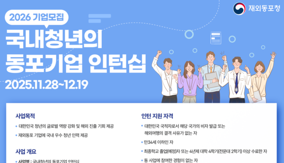 총영사관 측은 “2026년 사업 시행을 앞두고 인턴 채용을 희망하는 동포 기업들의 많은 관심을 부탁드린다”며 적극적인 참여를 독려했다.