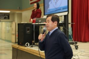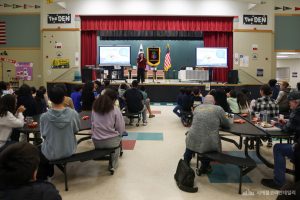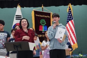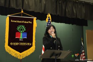 지난 13일에는 전교생이 함께하는 전체 모임이 열렸다. 행사는 국민의례와 애국가, 미국 국가 제창으로 시작되었으며, 학교 창립자이자 전 페더럴웨이 시장을 역임한 박영민 이사장이 페더럴웨이 시와 대한민국 강원도 동해시 간 자매도시 결연 이야기와 동해시에서 직접 후원해 제작한 동해정이 있는 한우리 정원의 사진을 보여주며 한우리 정원의 이야기 또한 학생들에게 들려주었다. 이어 박미조 부총영사는 외교부에서 제작한 동해 관련 영상을 소개하며, 동해 병기 캠페인의 취지와 의미를 설명했다. 동해 병기 관련해서 기억하셔야 될 것을 3가지로 요약해 보겠다고 하며, ” 2000년 역사를 지닌 동해, 국제 원칙으로 동해와 일본해 병기 표기, 페더럴웨이 시의 자매도시인 동해시라는 것과, 한우리 정원 동해정을 기억하면 동해를 잊지 않을 수 있을 것이다.”라고 했으며, 말미에 김춘수의 ‘꽃’을 낭독하며, 동해를 동해라고 불러주었을 때 의미가 있다는 것을 강조했다. 그 후 시작된 시상식에서 훌륭한 작품을 내어준 학생들을 격려하며, 직접 준비해 온 부상을 선물로 주었다.