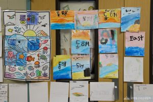 6일에는 각 반별 활동으로 담임교사들과 함께 동해 병기의 의미를 배우고, 학년별 수준에 맞게 동해 2행시, short poem, 그림 그리기 등 창작 활동을 진행했다. 학생들은 ‘동해’라는 이름을 주제로 각자의 생각과 감정을 작품에 담아 정성껏 완성해 제출했으며, 이 가운데 총 12점의 작품이 선정되었다.