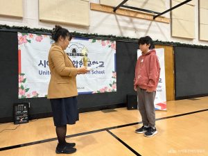 시애틀 통합 한국학교(교장 임수진)는 2025년 12월 6일, 재능 있는 학생들의 창의력과 한국어 글짓기 실력을 칭찬하는 교내 글쓰기 대회 시상식을 진행했다. 이번 시상식은 시애틀 통합이 수업을 진행중인 바델 해리티지 크리스천 스쿨 강당에서 열렸으며, 60여 명의 학부모들과 학생들이 참석해 자리를 더욱 빛냈다.
