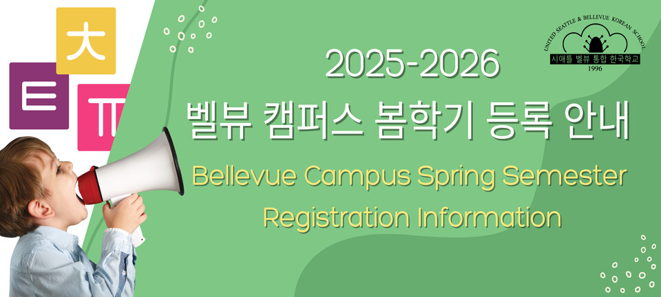 벨뷰 캠퍼스 한글학교인 벨뷰통합한국학교(김은주 교장)가 2025~2026학년도 2학기 등록을 시작했다.
