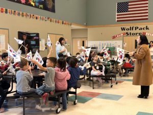 간식 시간에 카페테리아에 모여 연령별 3·1절 체험 교육을 했다. 이재은 교장은 학생들에게 3·1운동의 배경과 의미를 설명하며 다음과 같이 강조했다. “3·1절은 단순히 과거의 사건이 아닙니다. 어린 학생들과 평범한 시민들이 먼저 용기를 내어 ‘우리 나라는 독립된 나라’라고 외친 날입니다. 우리는 그 정신을 기억해야 합니다.” 이어 그는 학생들에게 “그렇다면 오늘 우리는 무엇을 할 수 있을까요?” 라는 질문을 던지며, 태극기를 소중히 여기기, 우리 역사에 관심 갖기, 서로를 존중하고 평화롭게 지내기라는 실천을 함께 나누었다. 설명을 들은 학생들은 태극기를 하나씩 나누어 받고, 태극기의 모양과 의미를 관찰하며 배웠다. 그리고 태극기를 높이 들고 “대한독립만세”를 힘차게 외쳤다. 교내를 함께 행진하며 3·1운동을 상징적으로 재현하는 시간도 가졌다. 태극기를 흔들며 목청껏 만세를 외치는 학생들의 모습은 단순한 체험을 넘어, 자긍심을 심는 순간이었다.