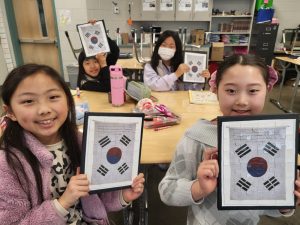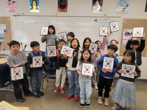 초등부 학생들은 태극기 퍼즐 맞추기 활동을 진행했다. 태극기의 건곤감리 문양과 태극 문양의 의미를 배우고, 퍼즐을 완성한 뒤 액자에 담아 작품으로 만들었다. 일부 학생들은 퍼즐을 직접 맞추고 붙이며 태극기의 구조를 더욱 깊이 이해하는 시간을 가졌다. 완성된 태극기 액자를 들고 기념사진을 찍으며, 학생들은 한국 국기에 담긴 철학적 의미—조화, 균형, 평화—에 대해 자연스럽게 이야기 나누었다.