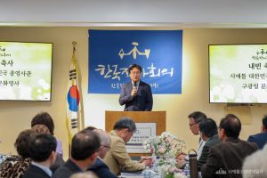 김 지회장은 또 이날 함께 자리한 임원진과 회원들에 대한 신뢰와 감사도 솔직하게 표현했다. “사실 저보다 옆에 계신 분들이 훨씬 일을 잘하신다”며 함께 힘을 모아주는 동료들이 있기에 지회가 제대로 자리 잡을 수 있을 것이라고 밝혔다. 짧지만 진심이 담긴 이 말에 참석자들 사이에서 웃음과 박수가 이어졌다. 그는 끝으로 “저희의 글을 지켜봐 주시고 응원해 주시길 부탁드린다”며 미주 한인 사회의 관심과 격려를 당부했다.